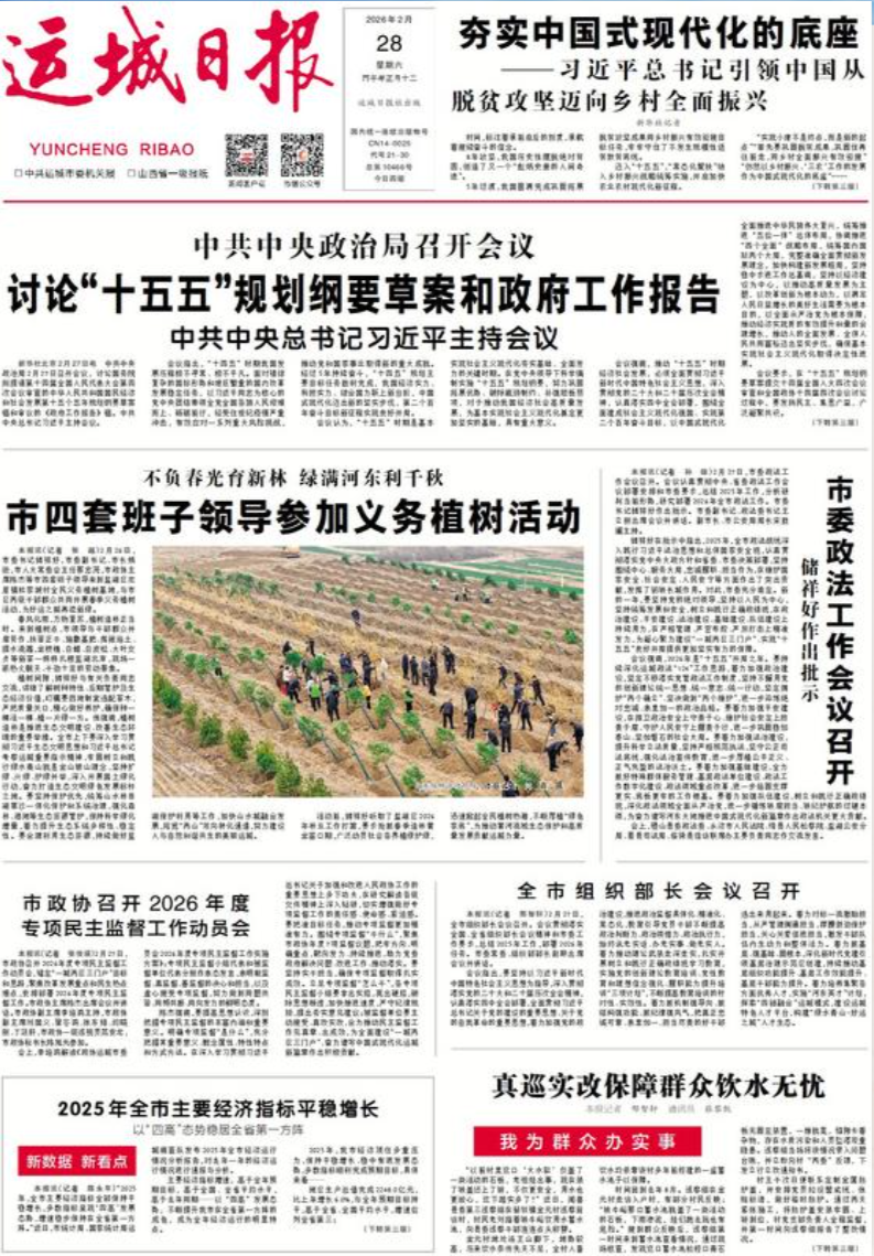 2月26日,市委书记储祥好,市委副书记、市长姚逊,市人大常委会主任那志茂,市政协主席陈杰等市四套班子领导来到盐湖区龙居镇杜家坡村全民义务植树基地,与市区两级干部群众共同 ...