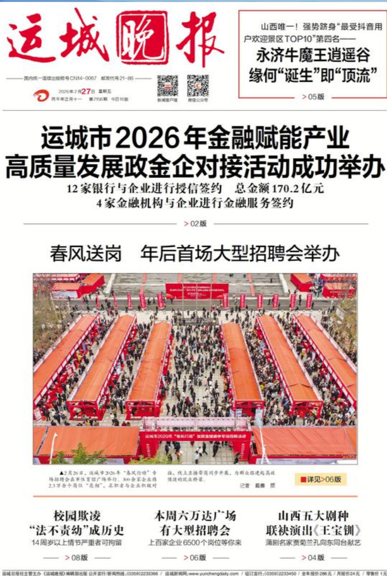 2月26日,运城市体育馆广场人潮涌动,由市人社局主办的运城市2026年“春风行动”暨就业援助季专场招 ...
